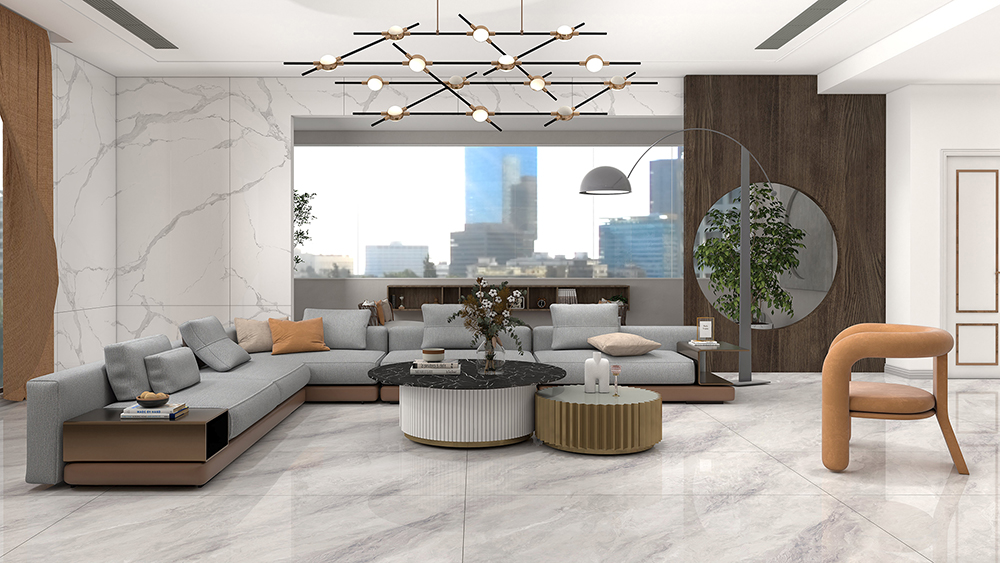 云川冰灰大板灵感源于意大利自然岩石,倾斜的纹理在灰白的映衬下洒脱灵动,犹如长绸带飞舞于山川流水间,行云流水,让人为之倾心。