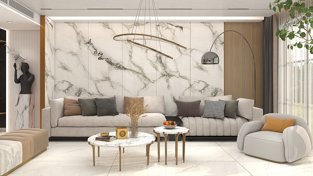 拉纳卡白岩板,龙飞凤舞的纹理,夸张而不浮夸,为素雅的空间提升了时尚的品质感。