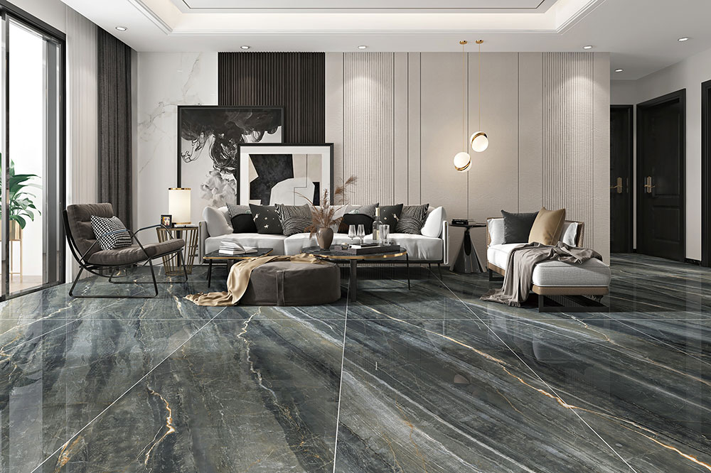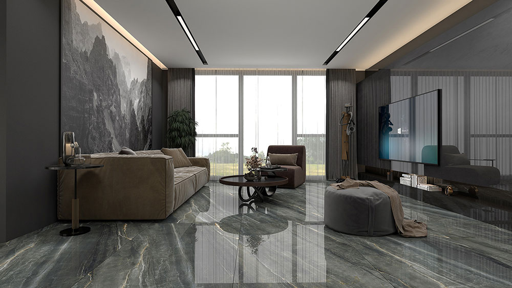 云丝深灰大板,在这客厅中创造了一个宁静的氛围,在现代前卫风的家具和柔和的光线衬托之下,空间显得更加优雅高贵。