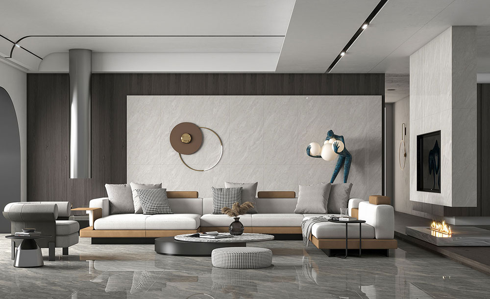 此客厅采用格兰德灰岩板+现代家具相结合,既能显出空间的优雅别致,又能提升品位。所有的摆设都透露着这个家满满的现代感,格兰德灰岩板,高级灰带有的低调和优雅的潜质,时尚又不失品位。