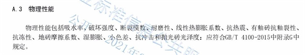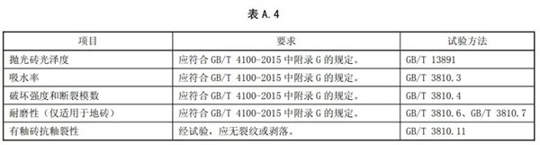 据企业标准信息公共服务平台查询,许多企业标准中的“附录A”优于国标“附录G”,基本体现在“边直度(正面)、直角度、表面平整度”这三个方面,而在吸水率、破坏强度、断裂模数、耐磨性等关键的物理性能指标方面,和国标中的“附录G”并无差别。